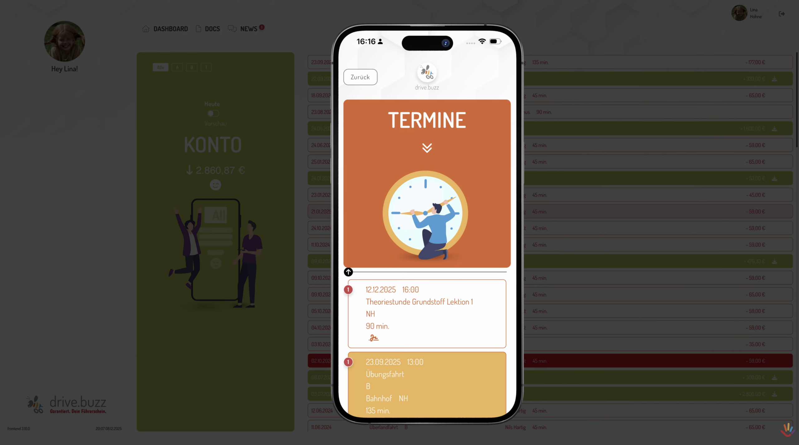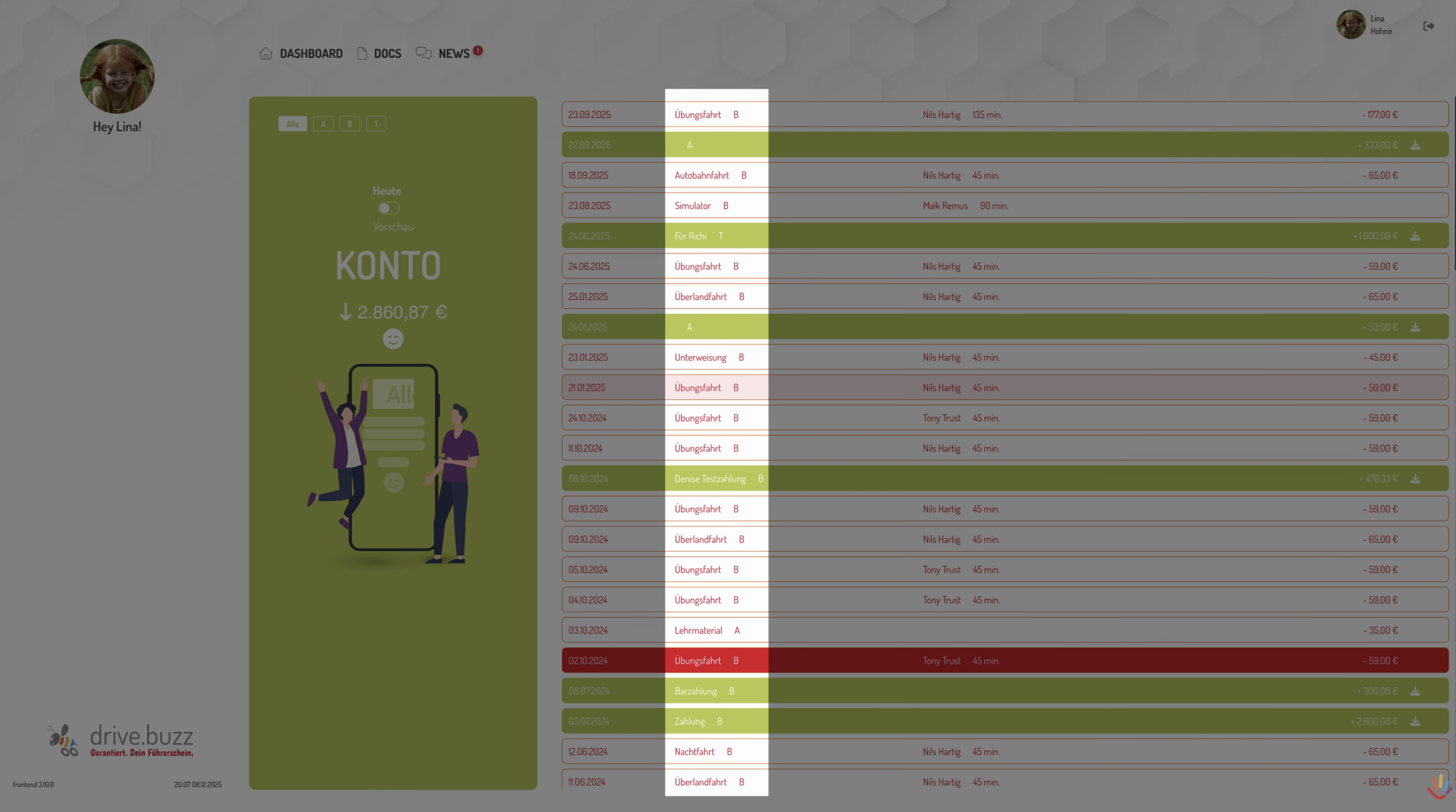 Auch mit diesem Update, gibt es eine ganze Latte voller kleinerer Verbesserung, die ich dir hier im Schnelldurchlauf zeigen darf: 1. Mailversand Kostenträger Wolltest du eine Rechnung für eine Ausbildung, die einem Kostenträger zugeordnet ist, direkt aus den Schülerleistungen per Mail versenden, kam die irrtümlicherweise direkt beim Schüler raus. Das ist doof. Wir haben das repariert. Danke lieber Thorsten Hess, dass du uns das gezeigt hast! 2. multiple current sessions In drive.buzz gab es da in ganz seltenen Fällen eine kryptische Fehlermeldung für deinen Schüler und er kam dadurch nicht mehr in seine App. Das ist mit dieser Version nun auch gefixt. 3. System springt zu einem vorherigen Schüler Wenn du so richtig fleißig und auch stundenlang in der Schülerliste gearbeitet hast, kam es manchmal vor, dass dein Fahrschulcockpit spontan zu einem anderen Schüler gesprungen ist. Das war natürlich verwirrend und es ist auch nicht gewollt. Wir konnten Dank Mithilfe der Fahrschule Manfred Wittner das Problem lokalisieren und haben es ausgemerzt. Vielen Dank Manfred & Team! 4. GQC/GQD Fahrunterricht korrekt berechnet Die Fahrstunden für BKF-Grundqquali Lkw oder Bus ticken nicht im fahrschulüblichen 45 Minuten Raster sondern in echten Zeitstunden. Das hat das System manchmal in der Anzeige hier in der Ausbildungskachel nicht richtig gerechnet. Wir haben Nachhilfe geleistet und die Anzeige stimmt ab sofort! 5. drive.buzz App Android Menü Auf manchen Android Geräten wurde das Menü in der drive.buzz App unten beschnitten. Das ist natürlich nicht gewollt. Peter Jakob und seine Frau Gabi hatten uns darauf und auf ein paar stilistische Feinheiten im Text aufmerksam gemacht. Wir haben genau zu gehört und das mit diesem Update ruckizucki behoben. Dankeschön für den Hinweis!