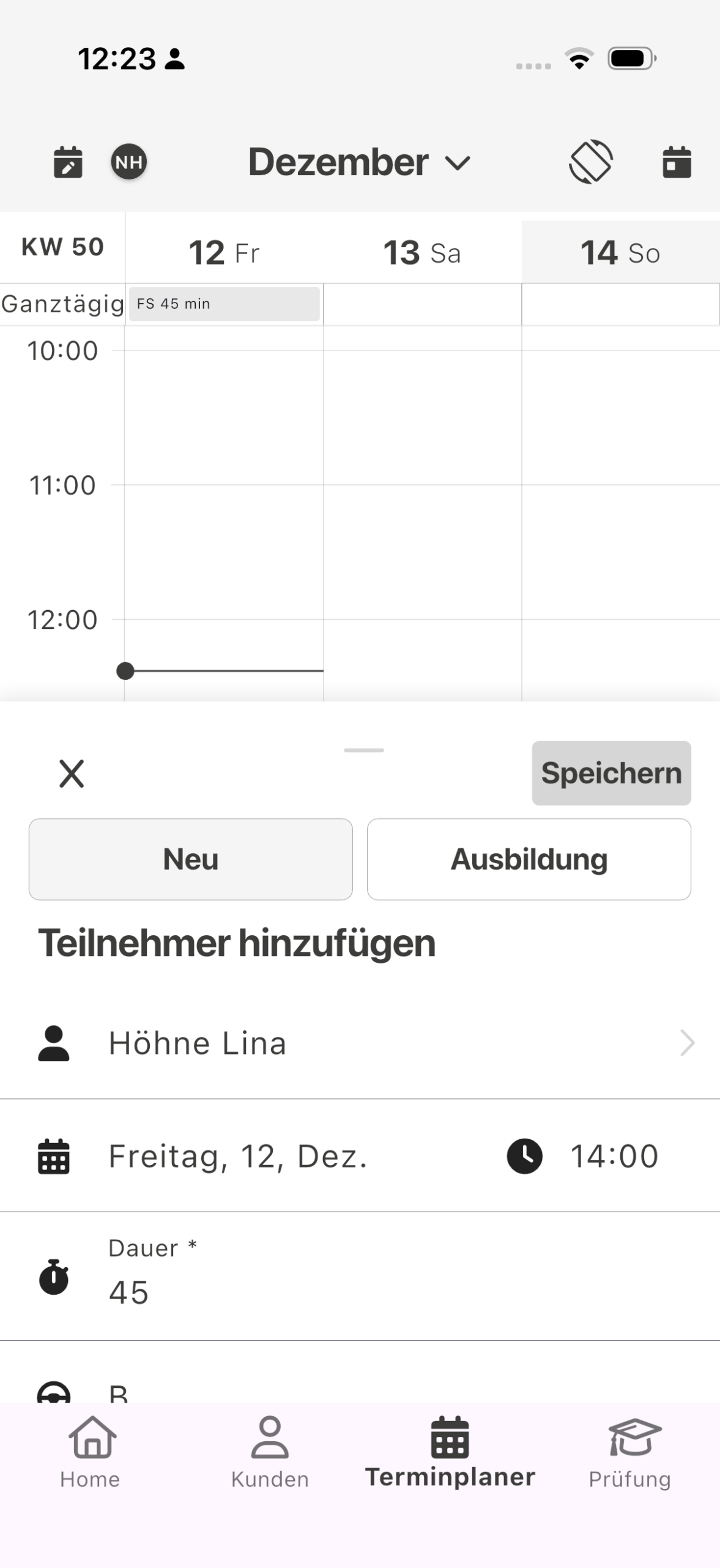 Wer kennt es nicht, die Fahrstunde ist vorbei, wird gebucht und ein neuer Termin muss vereinbart werden. Damit das schneller für Dich funktioniert, schlägt die App nun beim Erstellen eines neuen Termins deinen letzten Schüler vor. Außerdem wird nun auch automatisch die Uhrzeit ausgewählt, die du im Terminplaner ausgewählt hast.