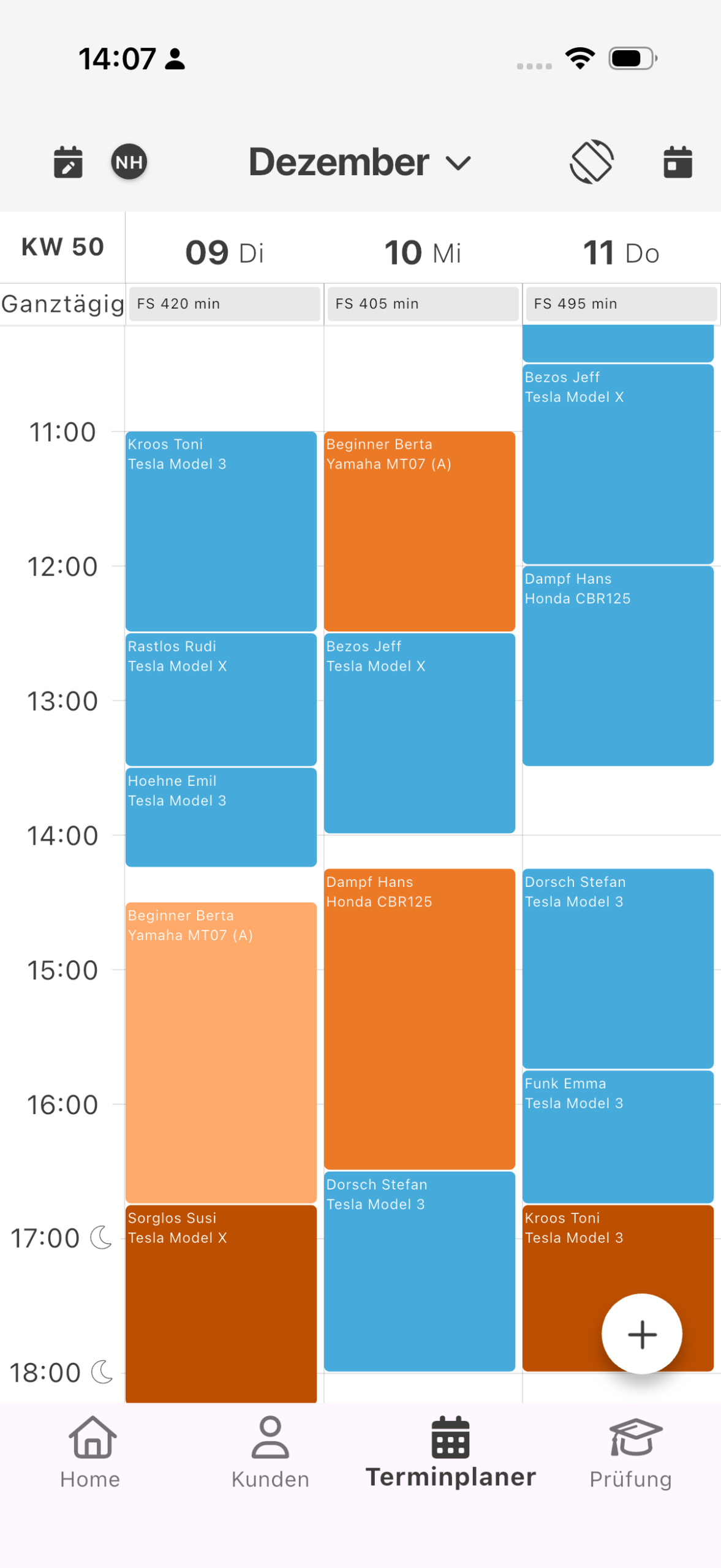 Wir haben dem Terminplaner einen Boost verpasst. Ab jetzt kannst du sowohl den Benutzer-, als auch den Fahrzeugkalender gleichzeitig nutzen, ohne dass andere Termine wie Prüfungen, sonstige Tätigkeiten oder private Ereignisse aus der Ansicht verschwinden! An dieser Stelle einen lieben Gruß an Virginia Braun und danke für die Unterstützung.